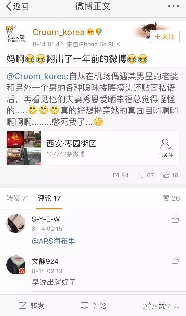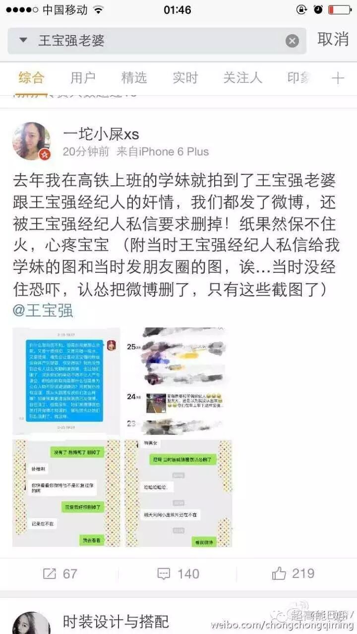 很快,E姐发现微博上也有网友爆料,曾在高铁上拍到过王宝强妻子与经纪人的暧昧行为,但微博均被经纪人要求删掉。
