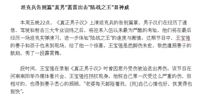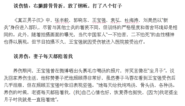 录制时,王定强受伤,而后多次公开表示对妻子的感谢。