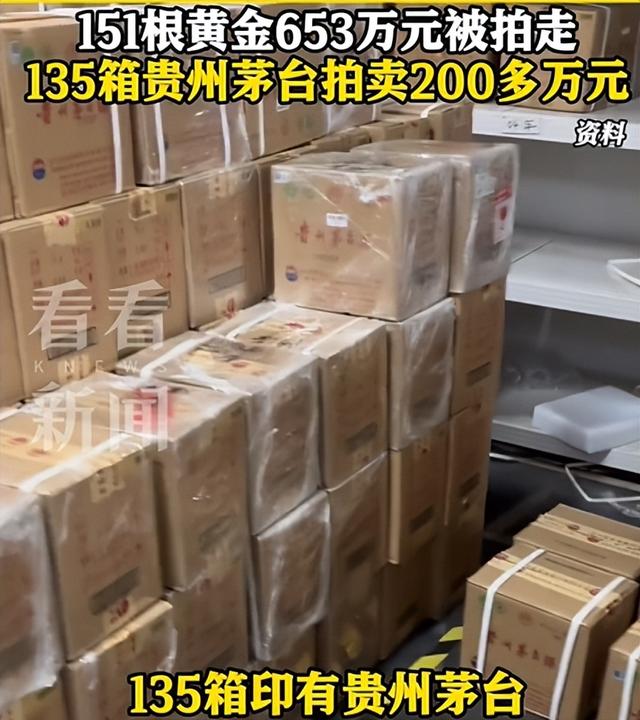 151根50克装“黄色金属质地制品”(疑似金条)起拍价634.2万元,最终以653.2万元成交。